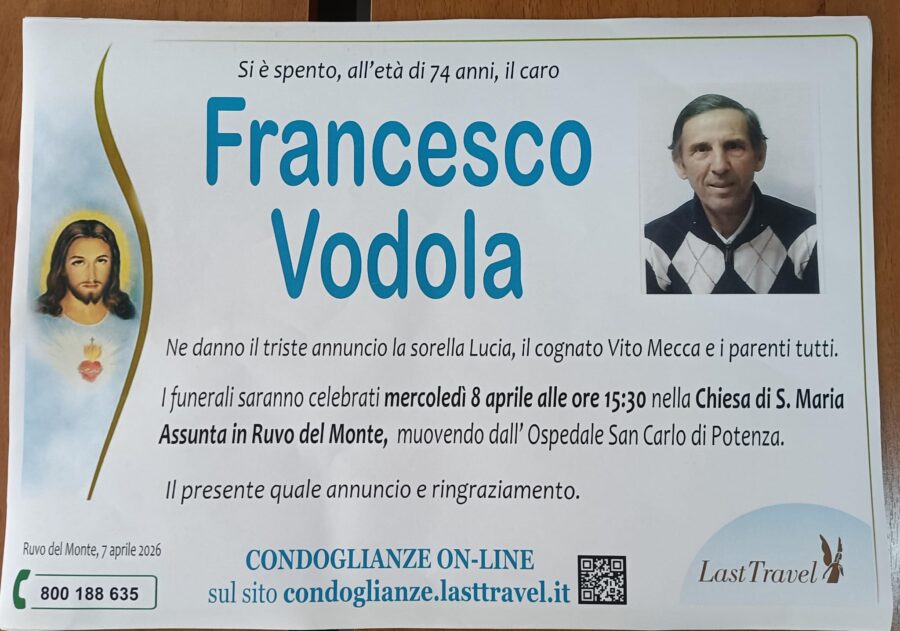 Si è spento all’età di 74 anni, il caro Francesco Vodola. Ne danno il triste annuncio la sorella...