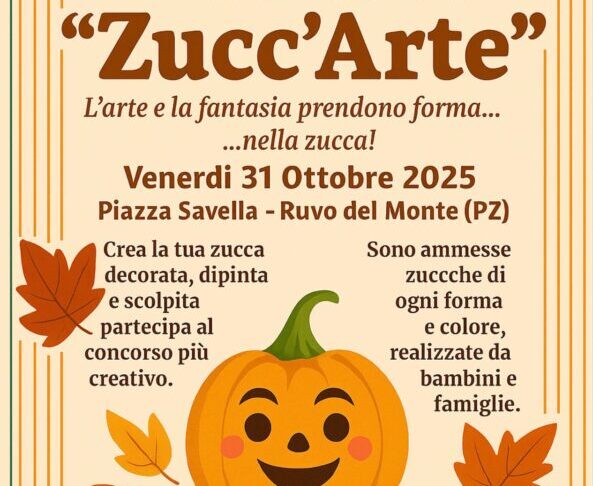 L’autunno a Ruvo del Monte si tinge di arancio, fantasia e allegria grazie al primo concorso “ZuccArte”, l’iniziativa organizzata dai volontari della Pro Loco per celebrare la stagione più colorata dell’anno attraverso l’arte e la creatività. L’appuntamento è fissato per giovedì 31 ottobre 2025 in Piazza Savella, dove grandi e piccoli potranno esporre le proprie...