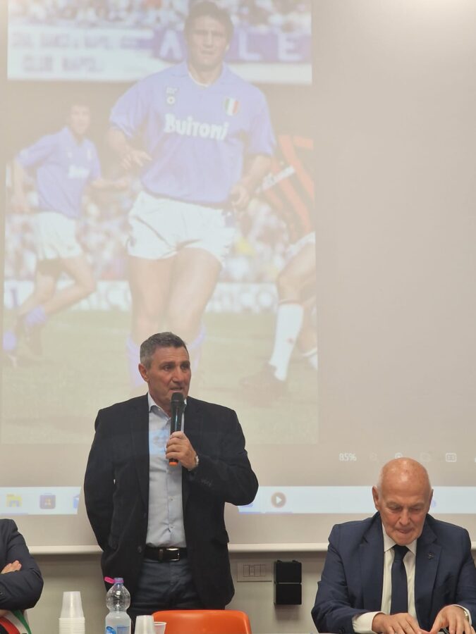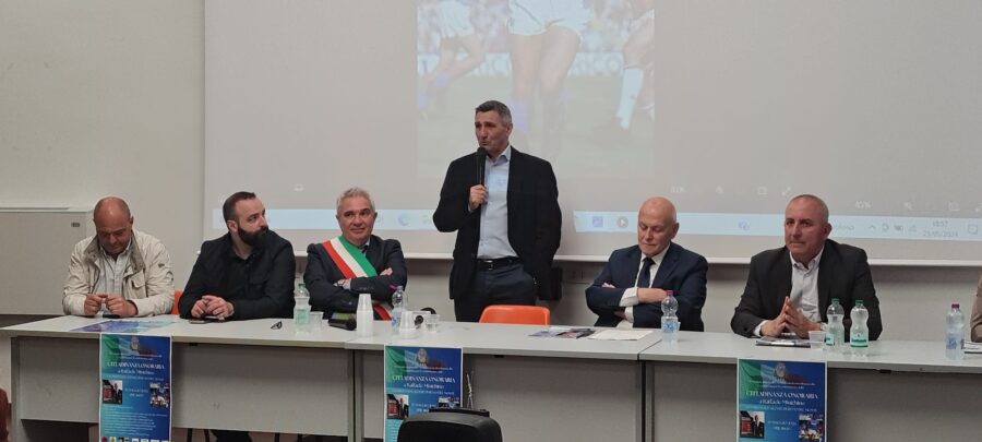 “In qualità di dirigente, quando, alcuni mesi fa, il qui presente Presidente Fasano mi esternò l’idea di proporre all’Amministrazione comunale di Ruvo del Monte, il conferimento della cittadinanza onoraria al rag. Raffaele Minichino, nato qui ma trasferitosi nella capitale con la famiglia, da bambino, non ci pensai un istante per esprimere il mio totale assenso alla lodevole iniziativa. Ciò in quanto l’amico Raffaele, fondatore e Presidente del Comitato organizzatore del famosissimo “Torneo Beppe Viola. La Champions League del calcio giovanile”( giunto alla 41^ edizione), nonché Direttore della Redazione sportiva di “Rete Oro”, con sede in Roma, non ha mai mancato di evocare il suo umile, piccolo paese natio, nelle sue interviste, non recidendo, così, mai, le sue radici con le origini. Le sue frequenti visite nel paese dove vivono i suoi ricordi, lo testimoniano senza alcuna ombra di dubbio. Sono motivi, questi, sufficienti per plaudire all’idea originaria che, grazie all’azione sinergica tra l’Amministrazione comunale, nella persona del suo sindaco, geom. Piero Mira, e la società sportiva dilettantistica di Calcio a 5 ”ASD Rufria 2018”, di cui rivendico il conio lessicale societario, e sono dirigente, vede oggi la sua concreta realizzazione, alla presenza di un nome altisonante del calcio professionistico italiano. Parliamo nientemeno che del capocannoniere Bruno Giordano: grande ex attaccante del Napoli di Maradona e della Nazionale, poi di Calcio a 5, nonché allenatore di calcio ed autorevole commentatore sportivo su Rete Oro e Rai 1: lo abbiamo visto tutti da Dublino, mercoledì scorso, commentare con cognizione di causa la finale di Europa League tra Atalanta e Bayer Leverkusen. Grazie mister Giordano, per essere qui come testimonial di Raffaele Minichino e di riflesso di questo piccolo ma grazioso borgo lucano, nelle cui vicinanze sono nati, rispettivamente, ad Avigliano, Francesco Colonnese (ex grande difensore dell’Inter) che Giordano conosce sicuramente e, a Rapone, i genitori di Antonio Valentin Angelillo, grande attaccante (capocannoniere) argentino nato nel 1937, a Buenos Aires, che, arrivato in Italia, tra gli anni ’50-’70 del Novecento, giocò soprattutto nell’Inter, nel Milan e nella Roma, collezionando tante presenze nella Nazionale argentina ed anche in quella italiana.