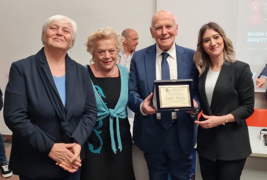Last but not least, complimenti a te, Raffaele, per il conseguimento di questo importante titolo onorifico conferitoti dalla tua terra, che ti nomina cittadino onorario di Ruvo del Monte, il paese che ti ha dato i natali. E grazie per tutte le volte che, orgogliosamente, hai citato Ruvo nelle tue interviste a “Rete Oro”, di cui, da giornalista, dirigi e conduci la Redazione sportiva, sperando che questo lieto evento sia un buon viatico per altre edificanti iniziative socio-sportive, come un auspicabile gemellaggio con il club che rappresento. Club ora, purtroppo, in crisi a causa della denatalità, che non ci consente neppure di formare una squadra di futsal a 5.