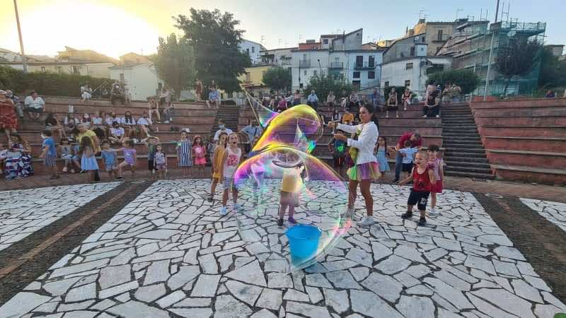 Con la festa di commiato nel pomeriggio di ieri, in cui sono state protagoniste, insieme a canti, balli e tanto sano divertimento, le bolle di sapone e lo zucchero filato della compagnia “La festa in testa”, è finita la Summer Camp. Grande successo per questa manifestazione che è durata ben quattro settimane e ha visto la partecipazione di 33 bimbi che hanno giocato e appreso, intervenendo attivamente a tutte le manifestazioni create ad hoc per intrattenerli e, soprattutto, non annoiarli. Il ringraziamento particolare, ovviamente, va a chi ha reso possibile tutto ciò, non solo sobbarcandosi l’onere delle iscrizioni, ma gestendo e organizzando il tutto: Sonia Radice, Sabrina Grieco, Emanuela Lucia Guerra, Sara Silvestre e Serena Grieco, a cui si sono aggiunte (e per questo le applaudiamo ancor di più e incoraggiamo altri/e coraggiosi ad unirsi alla ProLoco) le giovanissime Adriana Gaeta, Marika Lamorte, Michela Pizzirusso e Carmen Ricci.Applausi anche per il laboratorio dialettale di Graziella Perrotta protagonista anche nell’ultima serata grazie all’esibizione di alcune filastrocche ruvesi da parte dei bimbi. Ricordiamo anche la gita fuori porta alla Masseria Petrascritta, in cui i partecipanti hanno visto le varie fasi di preparazione di latte e formaggio stando, inoltre, a contatto col favoloso verde montano e animali fantastici. Con la speranza che tutti si siano svagati, almeno un po’, e che le famiglie si ritengano soddisfatte, speriamo di ritrovarci anche il prossimo anno con una nuova Summer Camp da passare insieme!!!