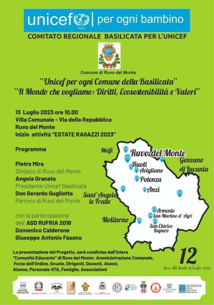 I diritti dell’infanzia del Piano “Unicef per ogni Comune della Basilicata” hanno “trovato casa” a Ruvo del Monte, 12° borgo aderente al progetto.