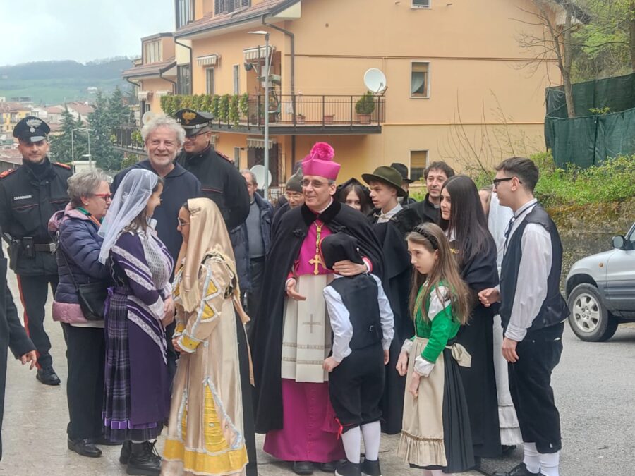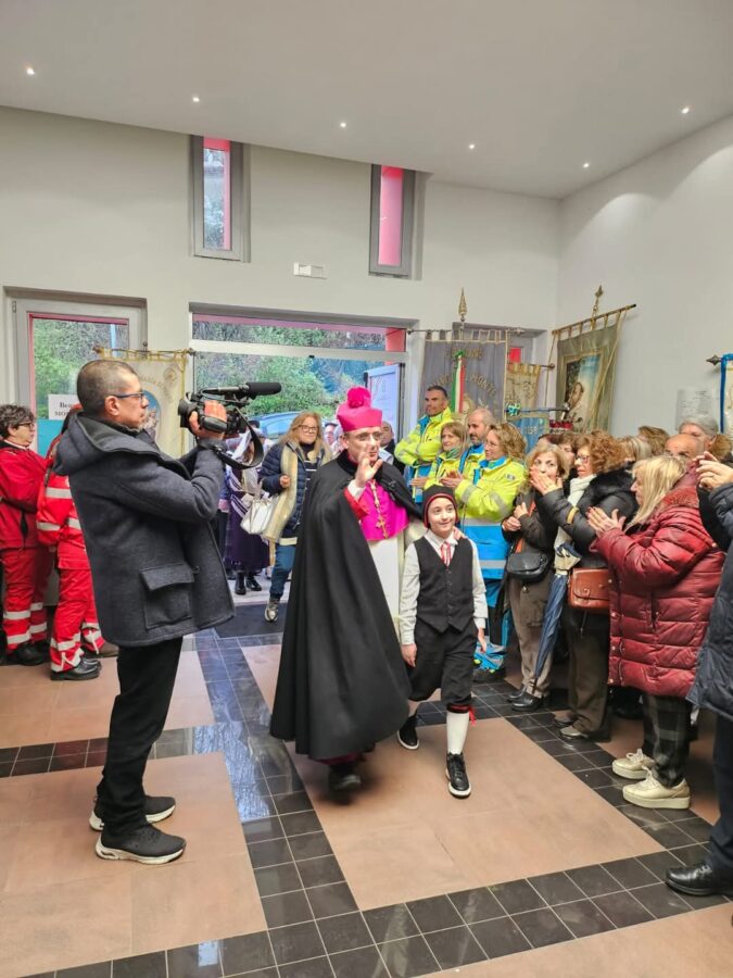 La giornata è iniziata con una calorosa e affettuosa accoglienza al Centro Polivalente, dove il Vescovo è stato ricevuto con entusiasmo e devozione da tutta la comunità, dall’Amministrazione Comunale e dalle Associazioni del borgo . Questo momento speciale è stato reso ancora più indimenticabile dal Coro Parrocchiale che ha intonato canti spirituali che hanno avvolto i presenti in un’atmosfera di riflessione e preghiera.