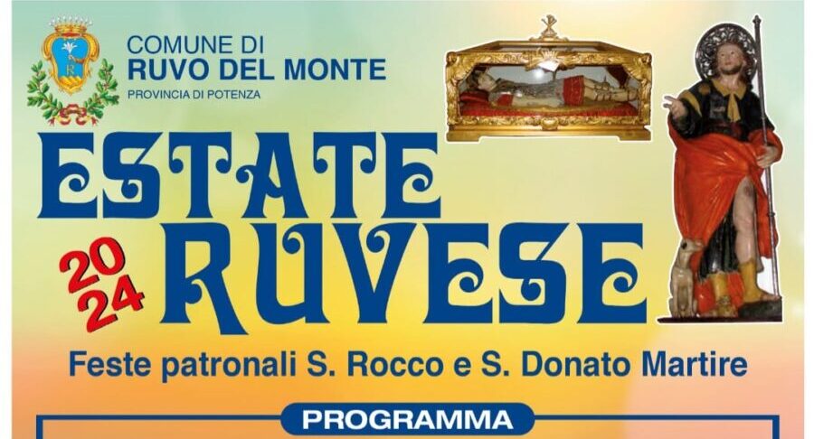 CI SIAMO. L’estate ruvese sta per partire e come ogni anno ci sorprende sempre di più, un programma ricchissimo, pieno di iniziative che spazia tra cultura, tradizione, sport, divertimento e….chi ne ha ne metta. Non è un caso che quando si arriva a San Donato (18 agosto) tutto è esaurito, non si riesce a trovare...