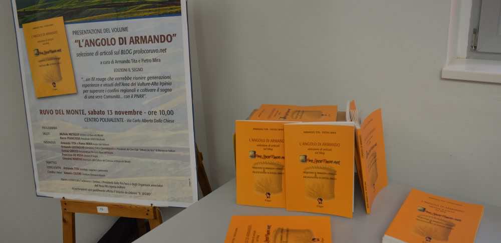 Nella mattinata del 13 Novembre si è svolto, presso il Centro Polivalente, la presentazione del volume “L’angolo di Armando” a cura di Armando Tita e Piero Mira (nell’occasione il presidente Serena Grieco ha conferito ad entrambi la carica di Socio benemerito), in cui è riportata una selezione degli articoli scritti di proprio pugno dal suddetto...