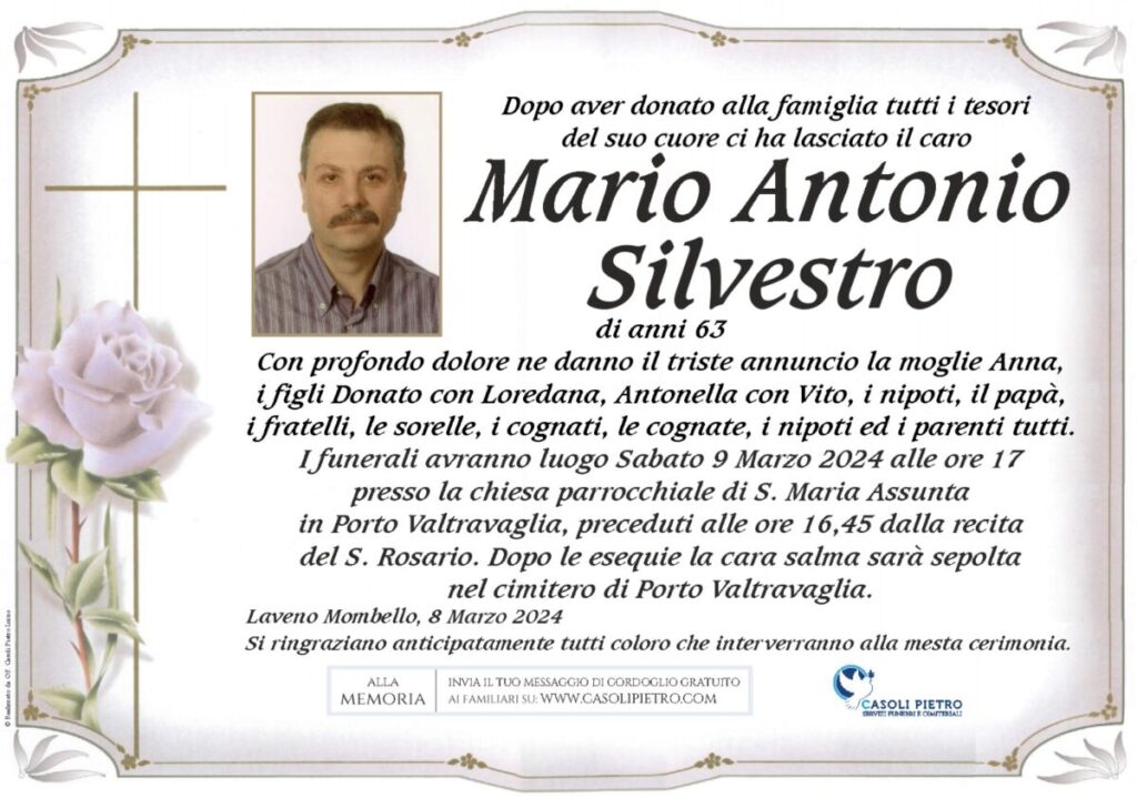 Dopo aver donato alla famiglia tutti i tesori del suo cuore ci ha lasciato il caro Mario Antonio Silvestro, di anni 63.