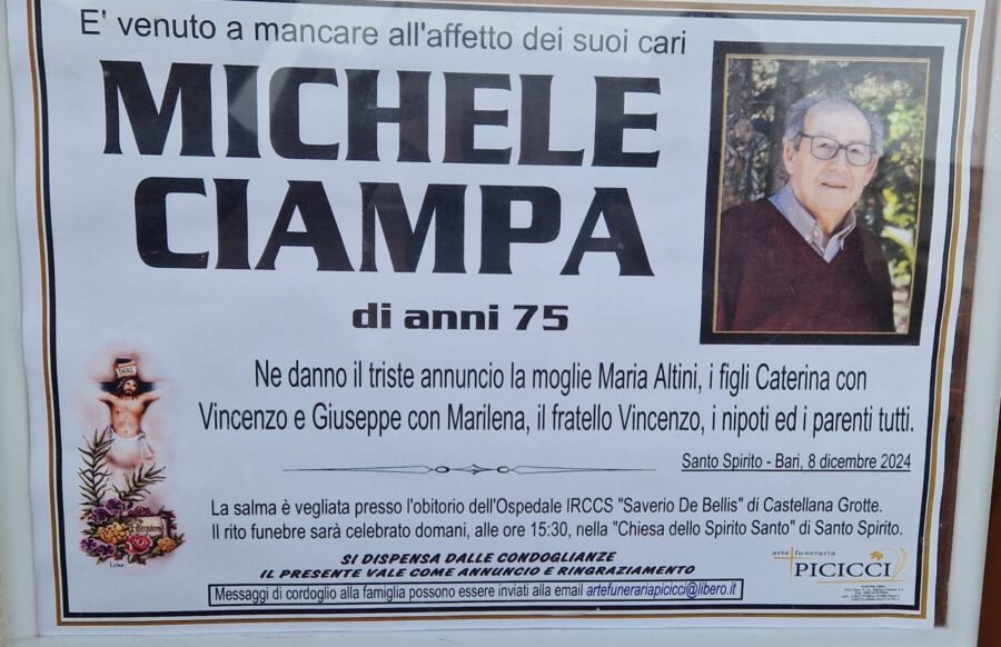 E’ venuto a mancare all’affetto dei suoi cari MICHELE CIAMPA.